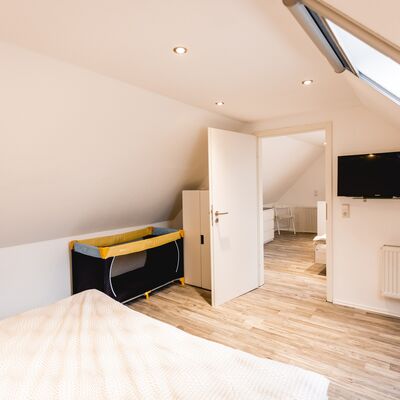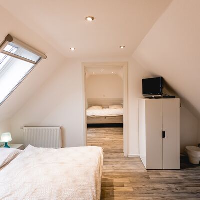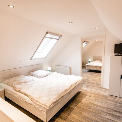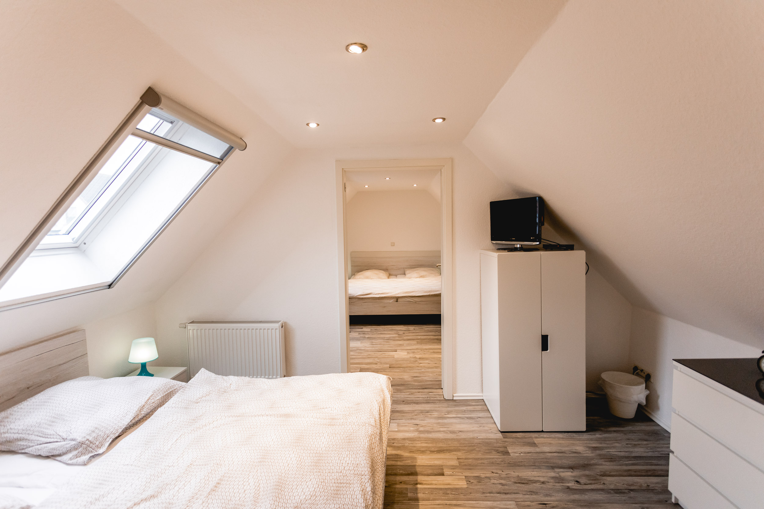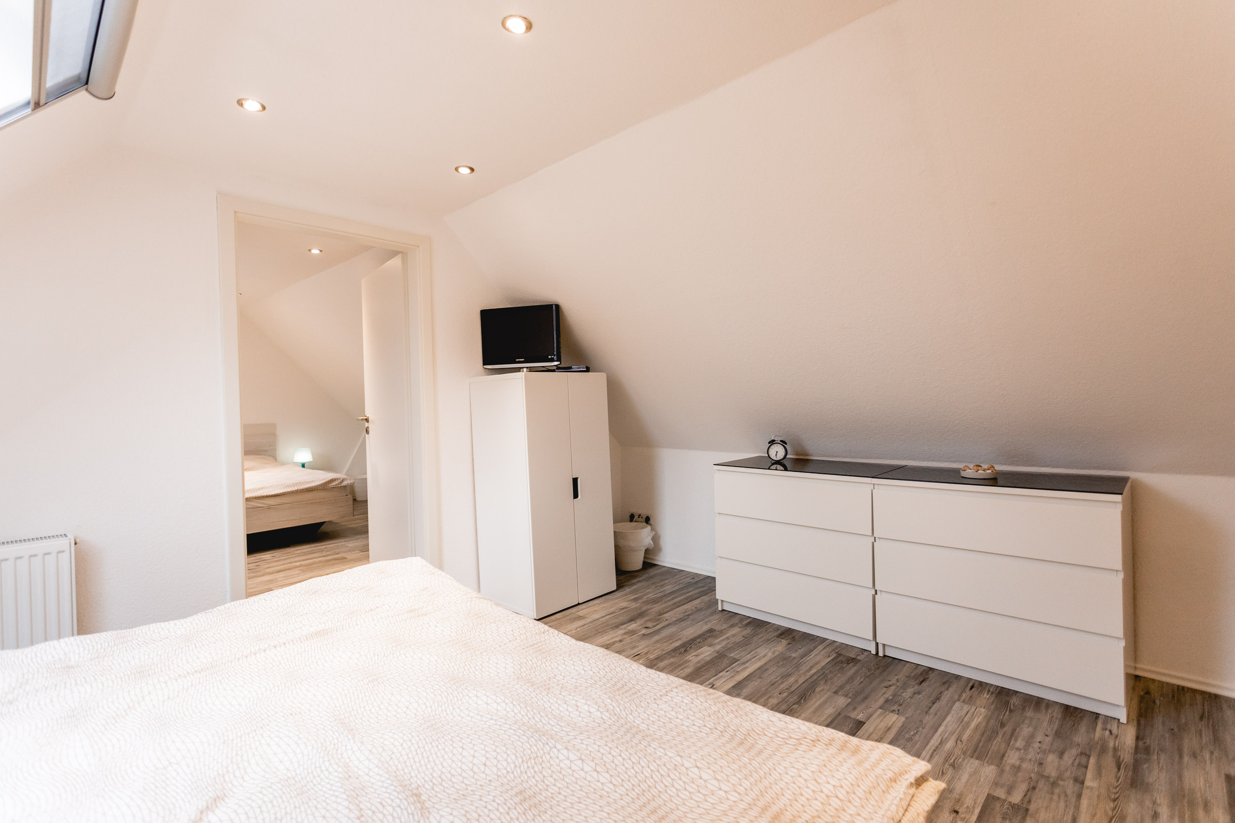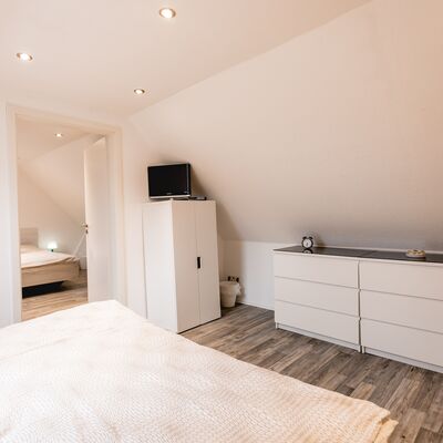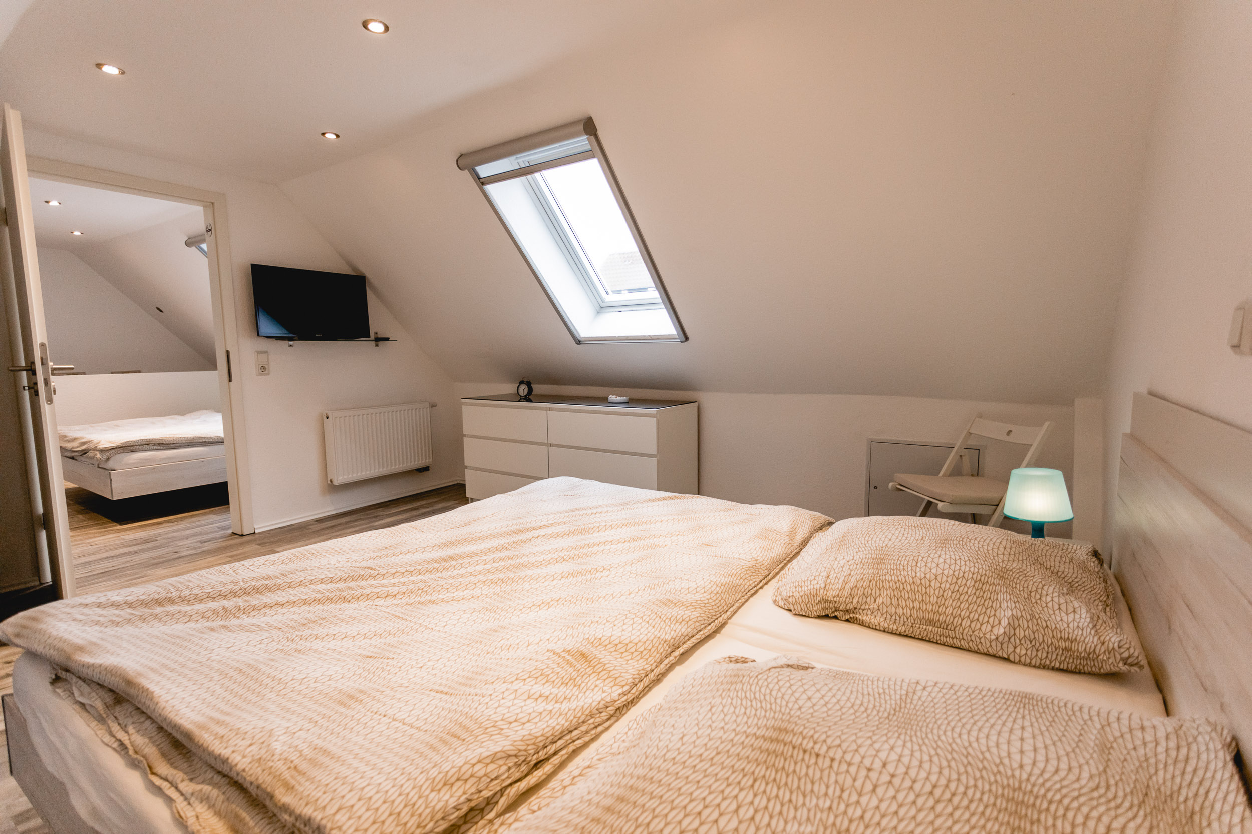 Ausgestattet sind diese jeweils mit einem Doppelbett mit Nachtkomoden. In den Schlafzimmern befinden sich auch jeweils ein Fernseher mit Satelliten-TV.