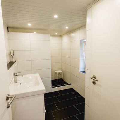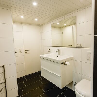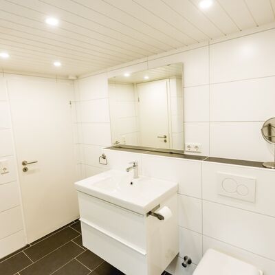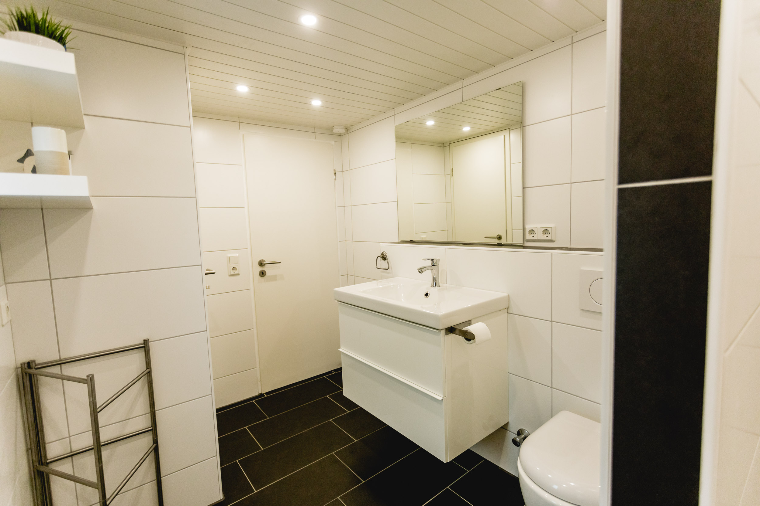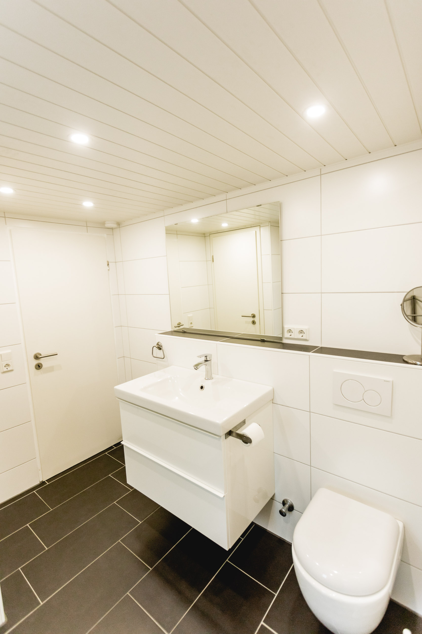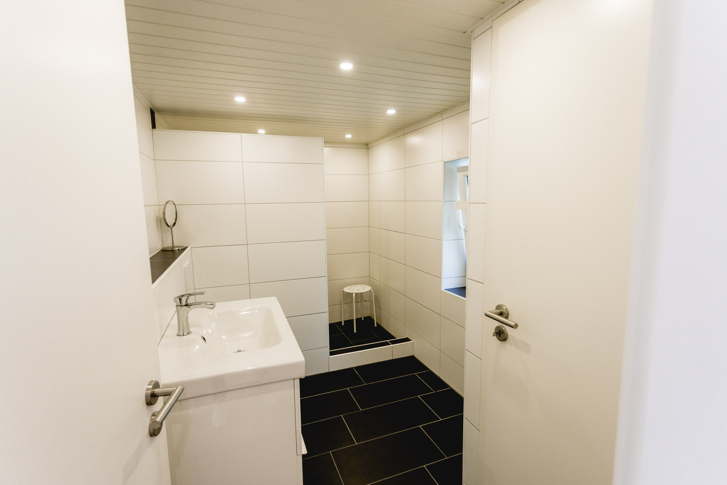 In diesem neumodernen Raum befindet sich das WC, die Dusche. Angrenzend haben Sie die Möglichkeiten zu waschen oder Ihr Kleinkind zu wickeln.